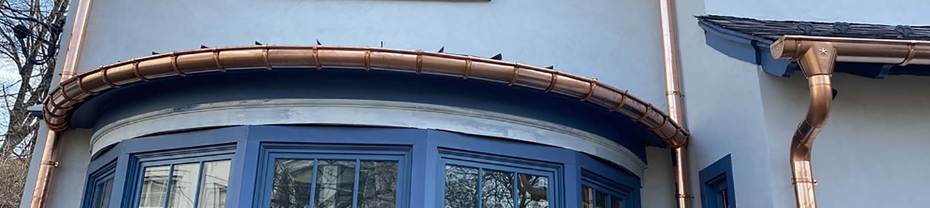 George’s Seamless Gutters specializes in the design and fabrication of elegant radius gutters in both copper and aluminum. These gutters, commonly crafted in K-style or Half-round profiles, precisely trace the curved lines of your home, adding both functionality and aesthetic appeal.